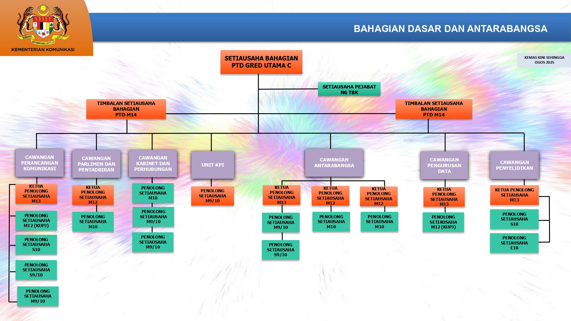 - Memastikan perancangan, pembangunan dan penyelidikan yang berkaitan dengan dasar penyiaran, penerangan dan perfileman kementerian dilaksanakan dengan efektif selaras dengan dasar-dasar berkaitan komunikasi
