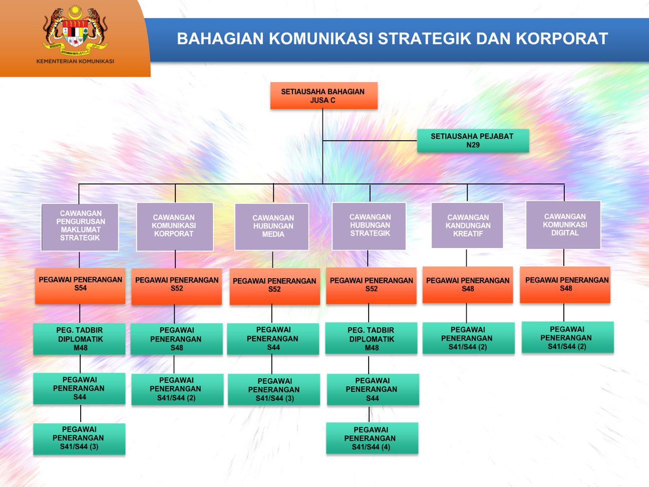 Bahagian Komunikasi Strategik dan Korporat (KS) terdiri daripada 7 cawangan iaitu:
